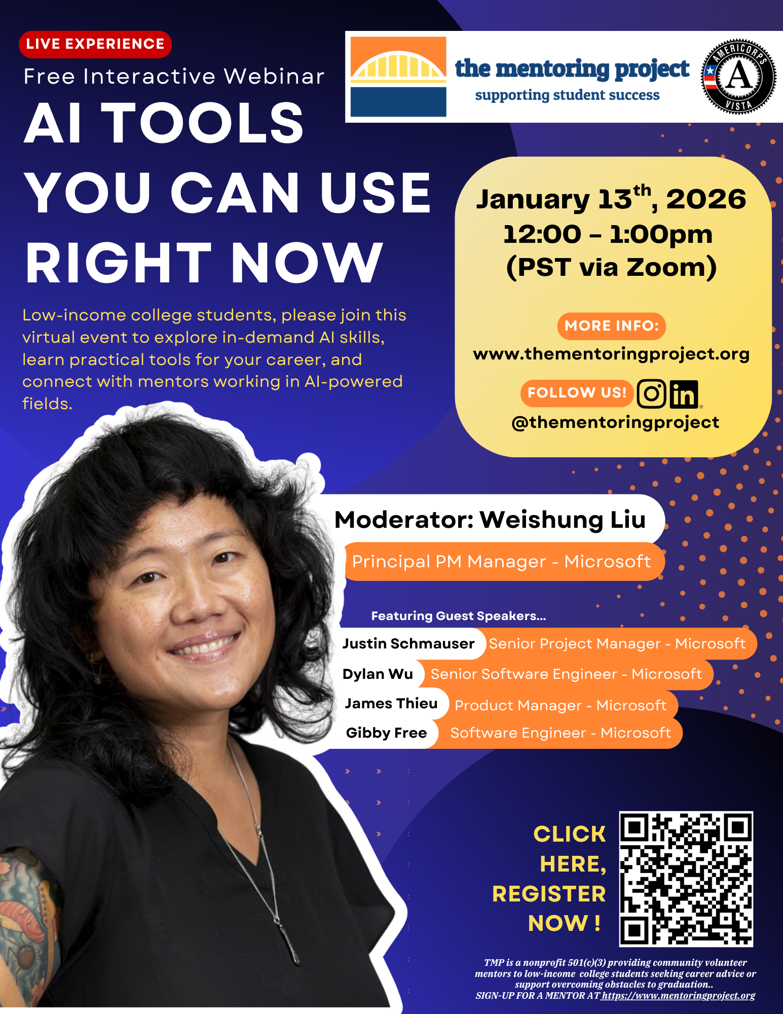 The Mentoring Project provides free virtual mentoring and career panels to low-income college students