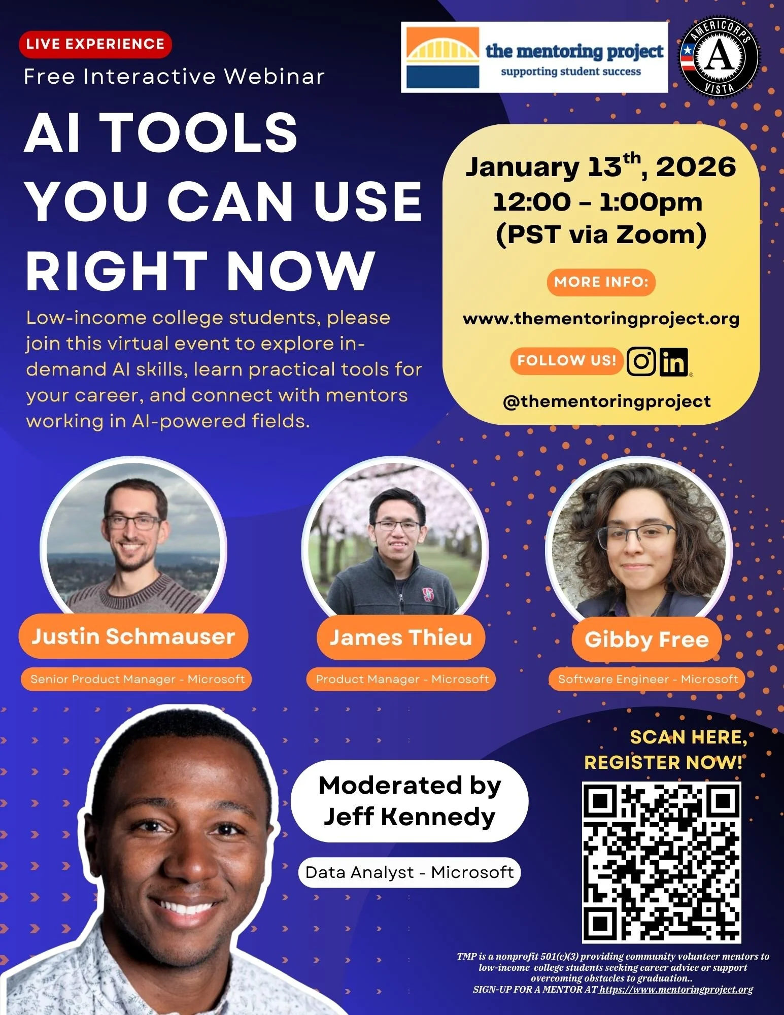 The Mentoring Project provides free virtual mentoring and career panels to low-income college students